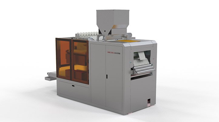 成型的面坯進入搓圓整形機進行搓圓塑形工序,將面坯搓成圓柱形,修圓弧頂,整形收底,該設備分工明確、相輔相成,使工藝步驟更加優化。