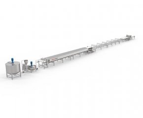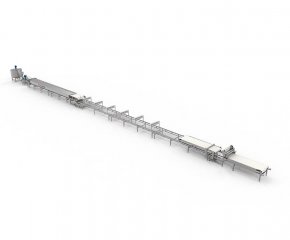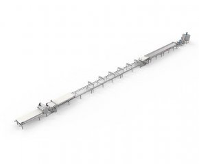 -PLC系統控制熟化成片的河粉經開片下架到風冷定型輸送機進行粉皮冷卻。