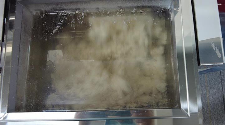 -第二次加水后,小顆粒開始黏結變大,這個階段的攪拌時間為2分鐘。這樣就可避免給面團帶來傷害,使面團持續達到顆粒松散、粒度大小一致、色澤一致、韌性十足、手握成團、輕搓成粒的最佳狀態。
