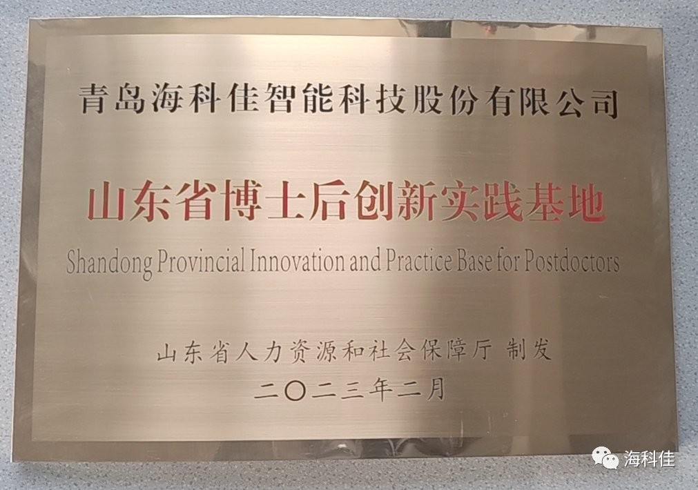 近期,山東省人力資源和社會保障廳公布“山東省博士后創(chuàng)新實踐基地”名單,認定青島海科佳智能科技股份有限公司等6家單位為山東省博士后創(chuàng)新實踐基地,并授予牌匾。