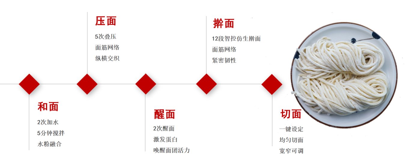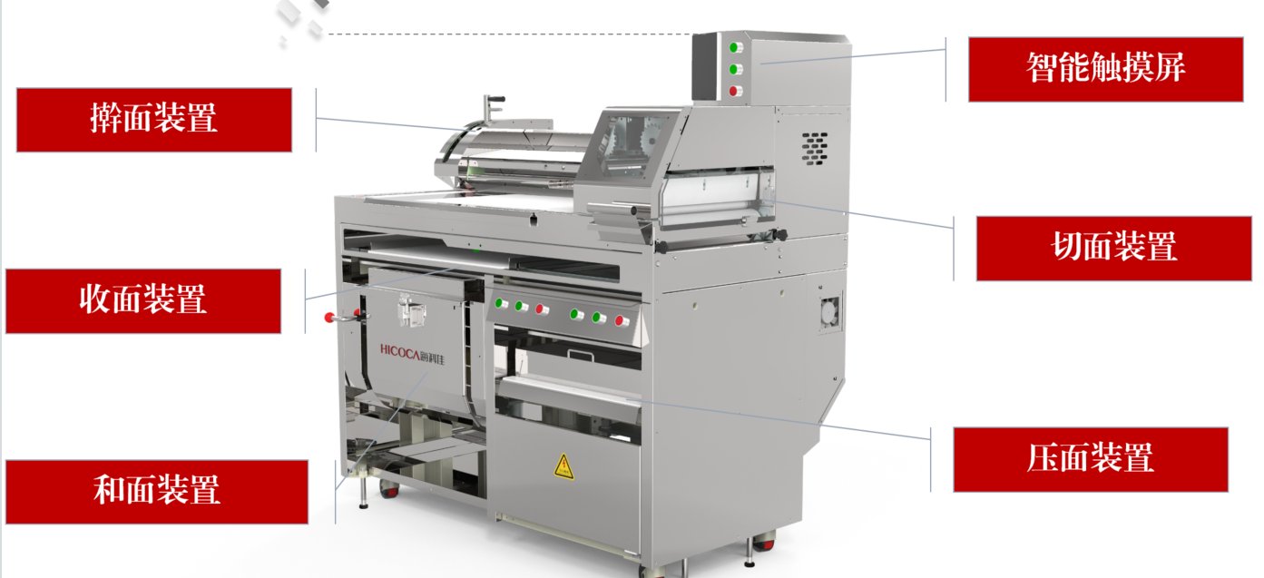 智能商用手搟面機功能齊全,操作方便,占地面積小,制造的手搟面還原了傳統手工制面工藝,具備勁道、爽滑、 Q 彈得口感特點。該產品的研制成功,為消費者帶來健康、個性化、便捷的新體驗,市場需求空間廣闊,是海科佳未來引領市場的新產品。