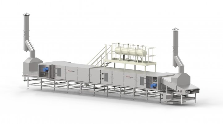 ◆分三層進(jìn)氣,每層前后進(jìn)氣,上中下層間的氣密性較好,采用低壓蒸汽源可大量減少能源消耗(每1000Kg成品蒸汽消耗約350-400Kg,a80%以上),內(nèi)部安裝清洗噴頭和潤(rùn)滑噴頭。