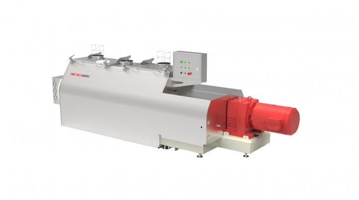 ◆底部裝有單臂式攪拌器,連續(xù)喂料輸送保證后續(xù)壓片均勻