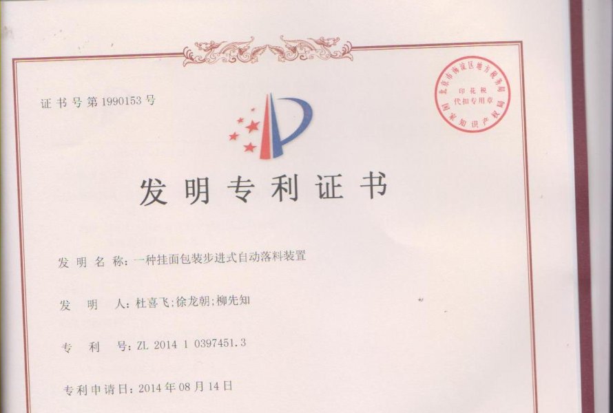 雙層切面機研發成功;2500g紙包裝機試制成功;機械手自動供料系統試制成功。