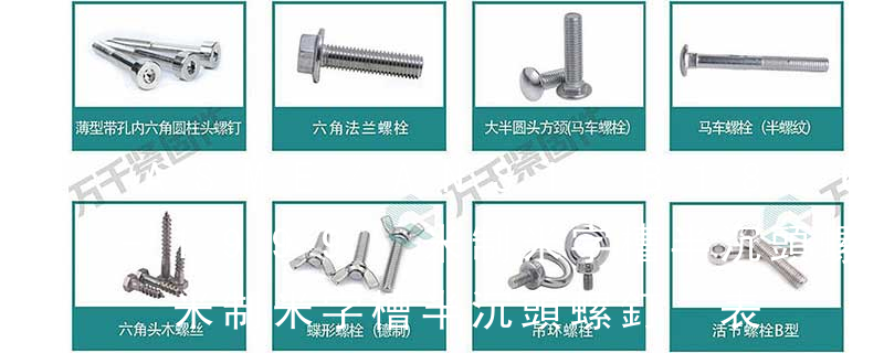 1.機螺釘 2.自攻螺釘 3.鉆尾螺釘 4.墻板釘 5.纖維板釘 6.木螺釘7.六角木螺釘 8.不脫出螺釘 9.組合螺釘 10.微型螺釘 11.家具螺釘 12.電子螺釘 13.鏈帶螺釘頭型 :1.六角頭(hexagon head)2.六角頭法蘭面(hexa