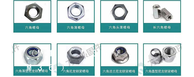 六角法蘭面螺母細牙GB/T 6177.2—2000;1型六角開槽螺母—A和B級GB 6178—86;1型六角開槽螺母—C級GB 6179—86;2型六角開槽螺母—A和B級GB 6180—86;六角開槽薄螺母—A和B級GB 6181—86;2型非金屬嵌件六角鎖緊 大小不同,螺紋不等分為不同的規(guī)格.一般國標、德標用M表示(例如M8、M16),美制、英制則用分數(shù)或#表示規(guī)格(如8#、10#、