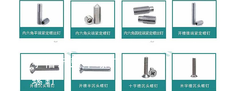 木螺釘有十字槽沉頭、十字槽半沉頭、十字槽圓頭、開槽(一字槽)沉頭、開槽半沉頭、開槽圓頭、六角頭等幾種,公稱直徑有1.6、2、2.5、3、3.5、4、5、6、7、8、10等系列,長(zhǎng)度有6、8、10、12、16、20、25、